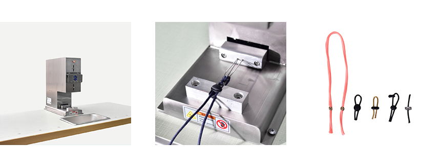 用途:适用于各类运动服、羽绒服、帽子等松紧绳扣,减轻劳动强度,提高效率2-3倍。